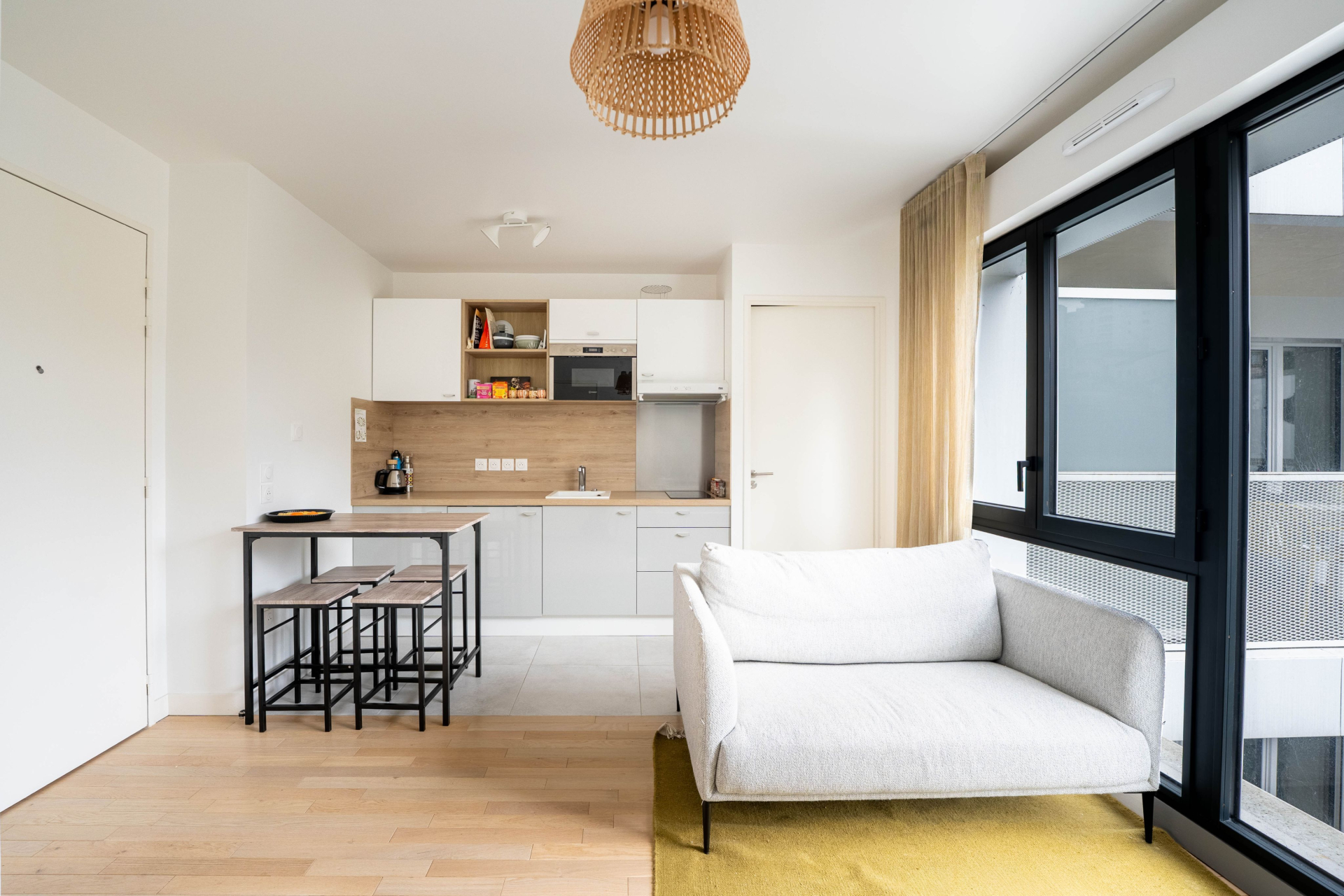 Il se compose d'un séjour avec cuisine américaine aménagée et équipée de qualité, d'une chambre et d'une salle d'eau spacieuse avec wc. Parquet massif au sol, double vitrage et volets électriques complètent les prestations. Très lumineux il bénéficie d'une agréable vue dégagée.